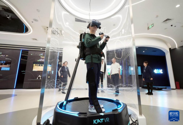 6月1日,昆山元宇宙產(chǎn)業(yè)園的元宇宙展示廳里,一名參觀者在體驗VR游戲。新華社記者 李尕 攝