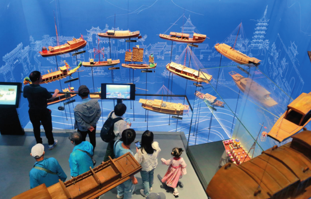 觀眾在江蘇揚(yáng)州中國大運(yùn)河博物館參觀(2024年5月18日攝)。孟德龍攝