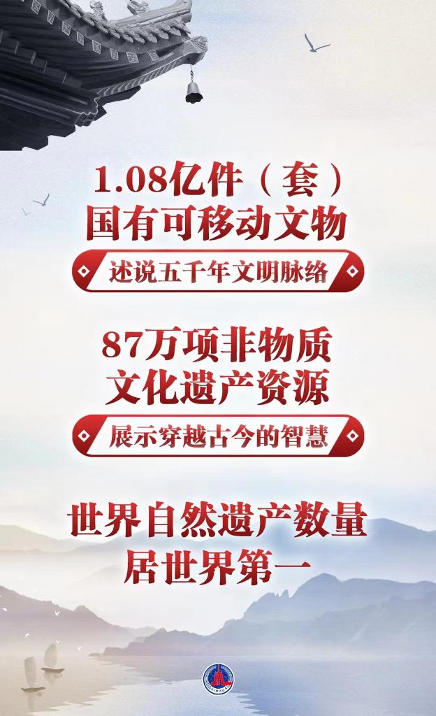 1.08億件(套)國有可移動(dòng)文物述說五千年文明脈絡(luò),87萬項(xiàng)非物質(zhì)文化遺產(chǎn)資源展示穿越古今的智慧,世界自然遺產(chǎn)數(shù)量居世界第一……文化和自然遺產(chǎn)濃縮著中華文明發(fā)展和自然演進(jìn)的珍貴成果。