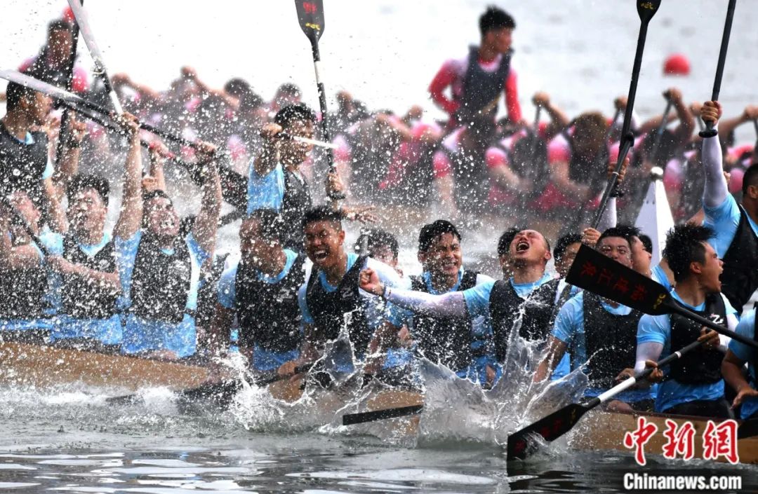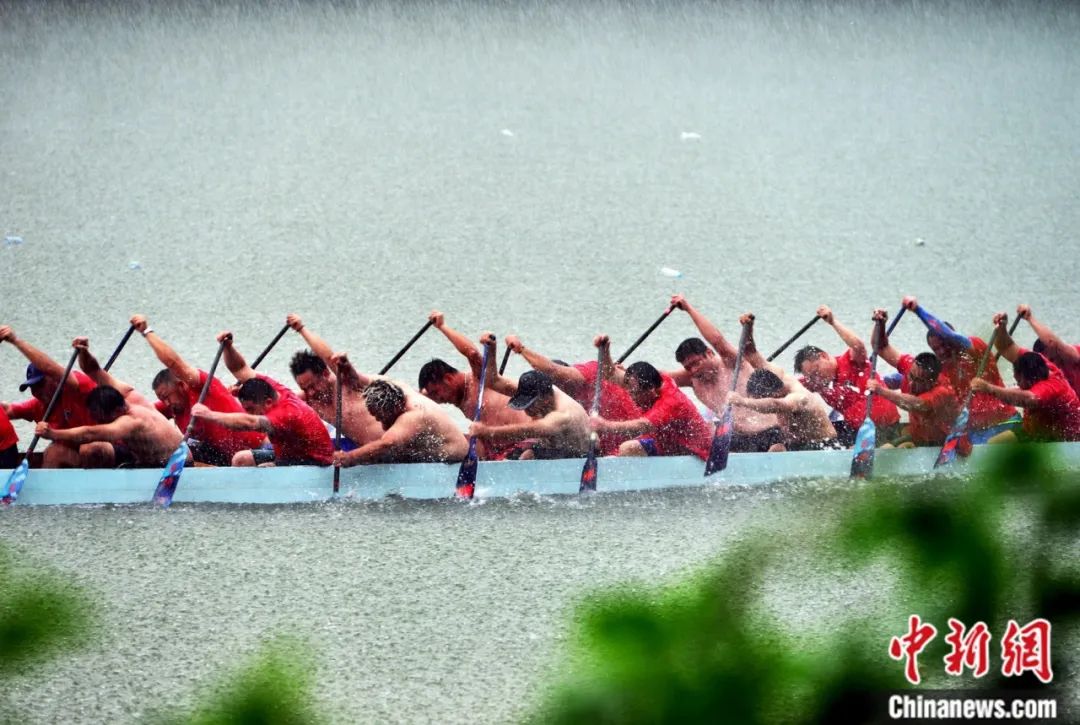 在廈門,端午節(jié)期間舉辦多場(chǎng)龍舟賽事。選手們你爭(zhēng)我?jiàn)Z,奮力劃槳,給市民帶來(lái)了一場(chǎng)場(chǎng)視覺(jué)盛宴。中新社記者 王東明 攝