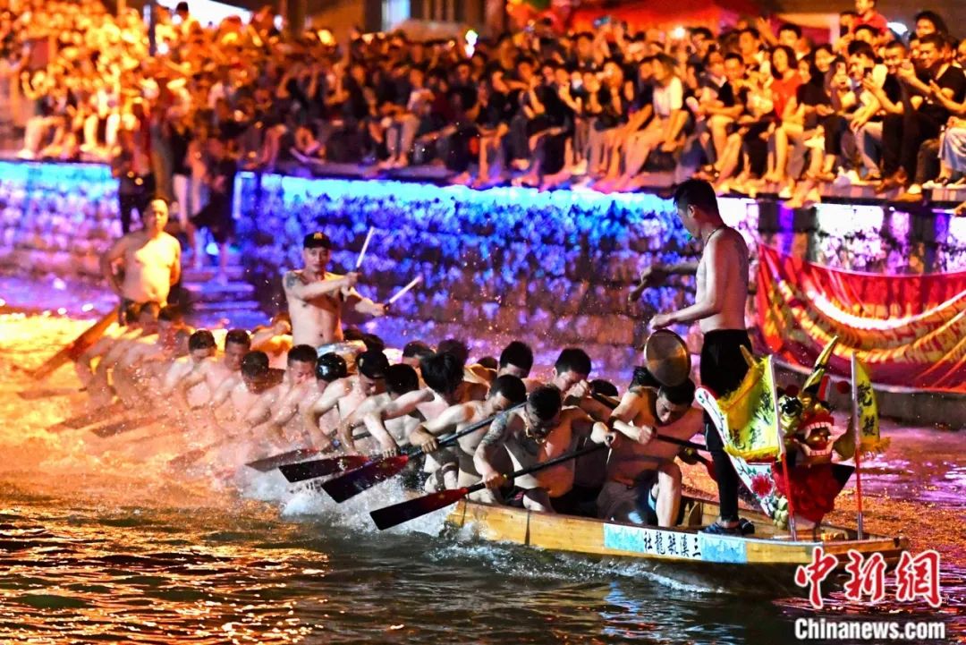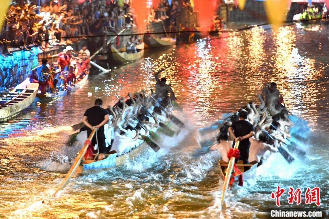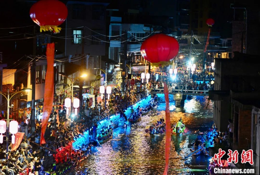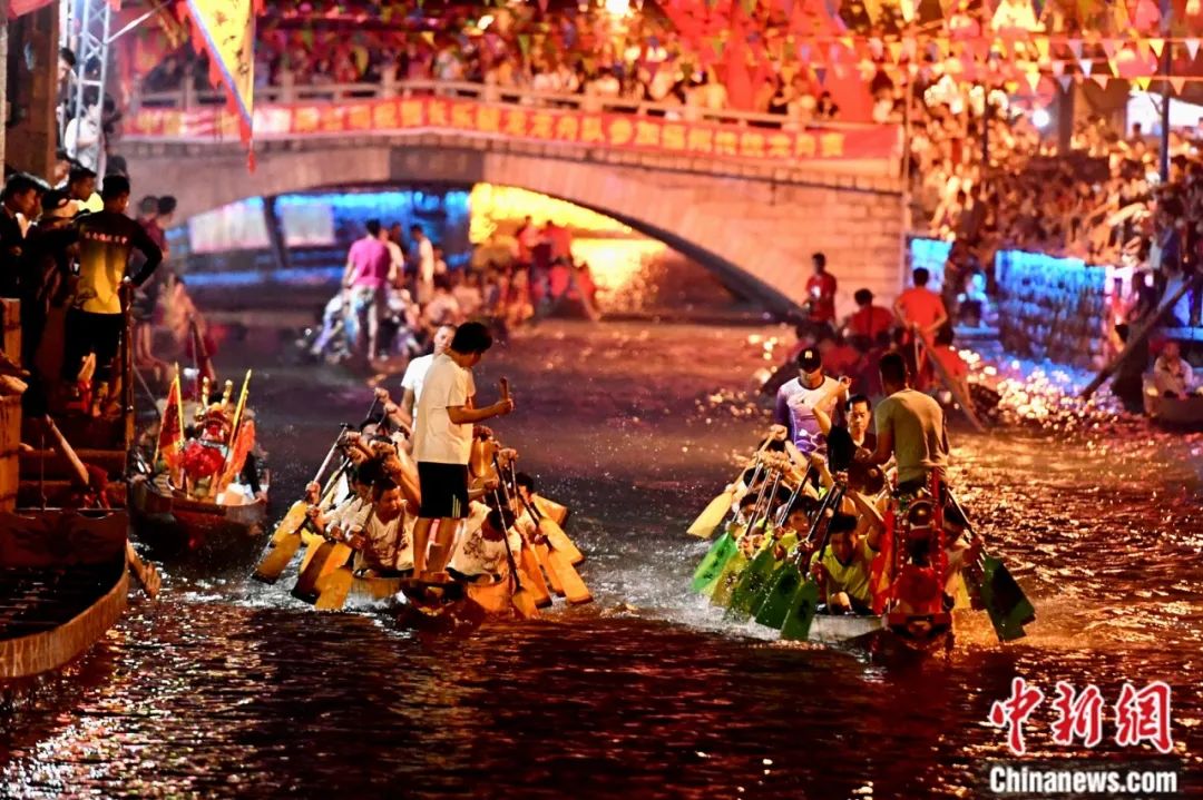 福州長(zhǎng)樂(lè)三溪夜賽龍舟盛況。中新社記者 張斌 攝