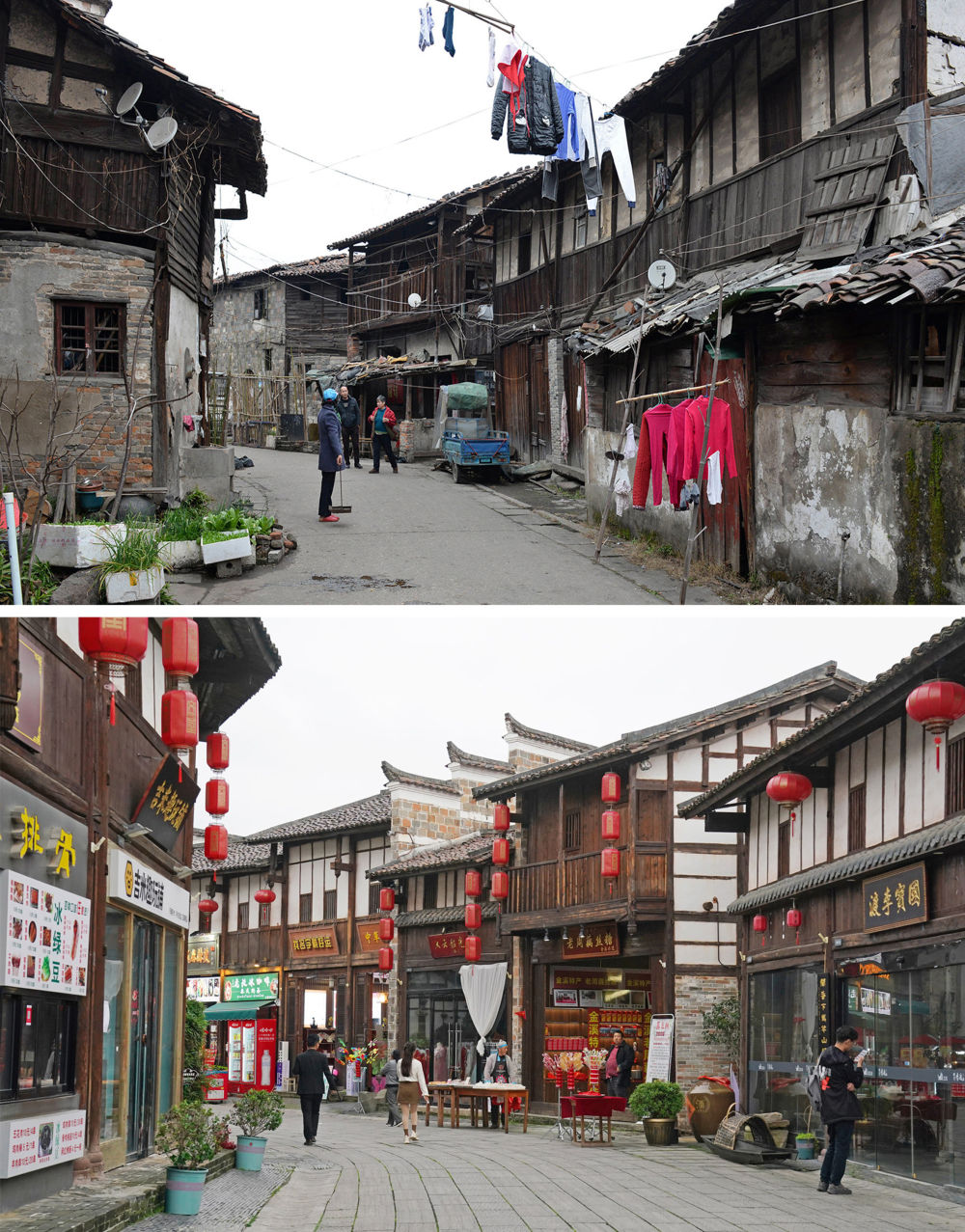 拼版照片:上圖為福建泰寧縣古城核心區(qū)(資料照片);下圖為同一地點(diǎn)拍攝的福建泰寧縣古城核心區(qū)(2024年4月20日新華社記者魏培全攝,無人機(jī)照片)。新華社發(fā)