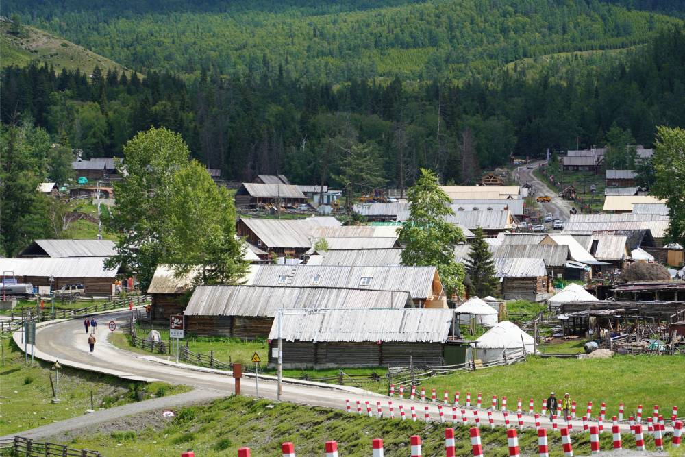 初夏午后,阿爾泰山蒼翠欲滴,牛羊成群。新疆哈巴河縣齊巴爾鎮(zhèn)吉林新村人頭攢動(dòng),來自五湖四海的游客走進(jìn)電視劇《我的阿勒泰》拍攝地,尋找“詩與遠(yuǎn)方”。