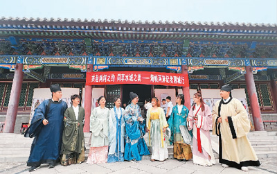 在聊城文廟,臺灣媒體人穿漢服體驗傳統(tǒng)文化。