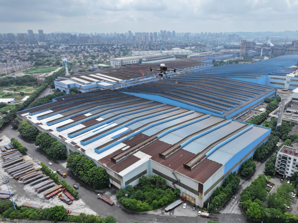 2024年6月13日,在湖南省湘潭市,無人機(jī)在湘潭鋼鐵集團(tuán)有限公司進(jìn)行智能巡檢(無人機(jī)照片)。無人機(jī)智能巡檢系統(tǒng)利用5G通信、北斗定位技術(shù)和“AI+機(jī)器視覺”等技術(shù),針對人員點檢不便的問題,對廠內(nèi)多場景進(jìn)行無人機(jī)定期智能巡檢,實現(xiàn)高爐測溫、電力絕緣端子巡檢等工作。 新華社記者 陳澤國 攝