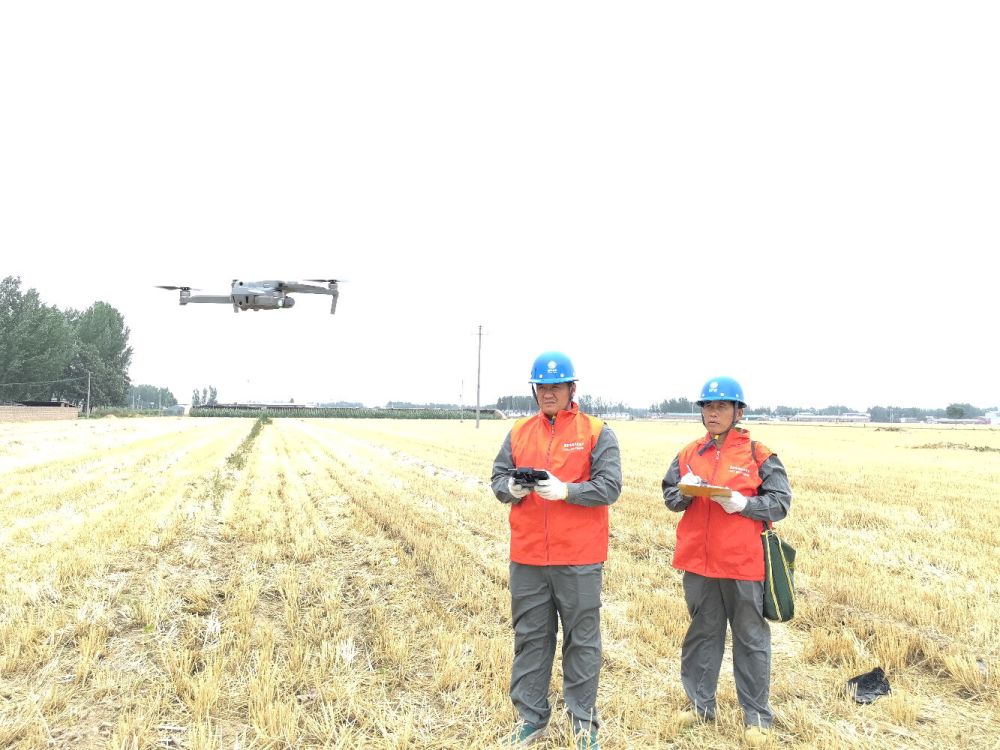 2024年6月13日,河北省臨漳縣供電公司工作人員在麥田中檢查涉農用電線路。新華社記者趙鴻宇 攝