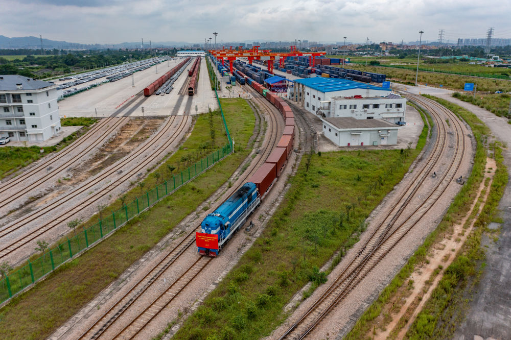 6月19日,粵港澳大灣區(qū)首列全程時刻表中歐班列從廣州國際港駛出。新華社發(fā)