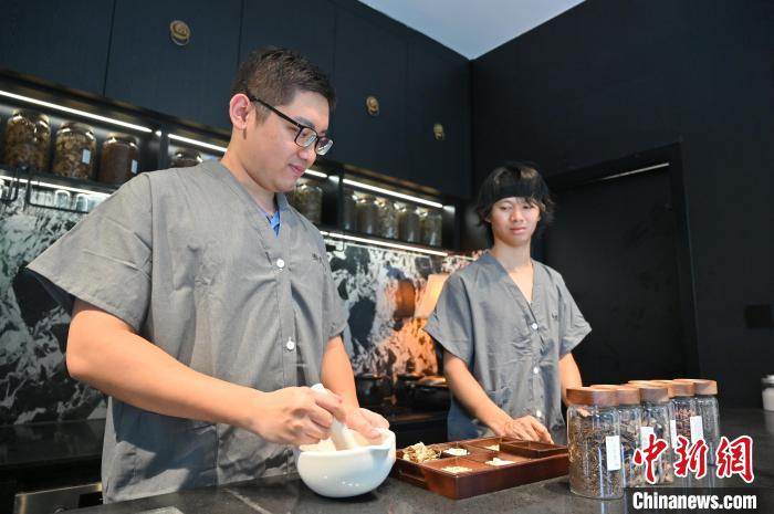 “我們通過在休息區(qū)增設(shè)了‘中醫(yī)和你聊會(huì)兒天’項(xiàng)目,顧客能在聽歌、品藥膳的過程中體驗(yàn)把脈,以親和的方式,讓客人享受單獨(dú)診療咨詢服務(wù)?!痹撛\所負(fù)責(zé)人甘斌介紹,新潮中醫(yī)館搭建新社交場景,讓民眾隨時(shí)感受中醫(yī)文化。在有著十五年從醫(yī)經(jīng)驗(yàn)的他看來,“舊與新”的碰撞讓中醫(yī)文化變新潮,養(yǎng)生也能很“酷”。