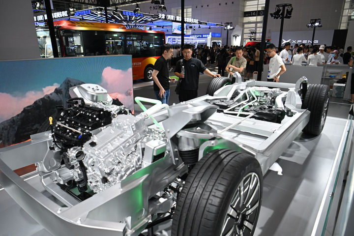 這是在博覽會(huì)現(xiàn)場拍攝的一款智能網(wǎng)聯(lián)汽車平臺架構(gòu)(6月20日攝)。新華社記者 孫凡越 攝