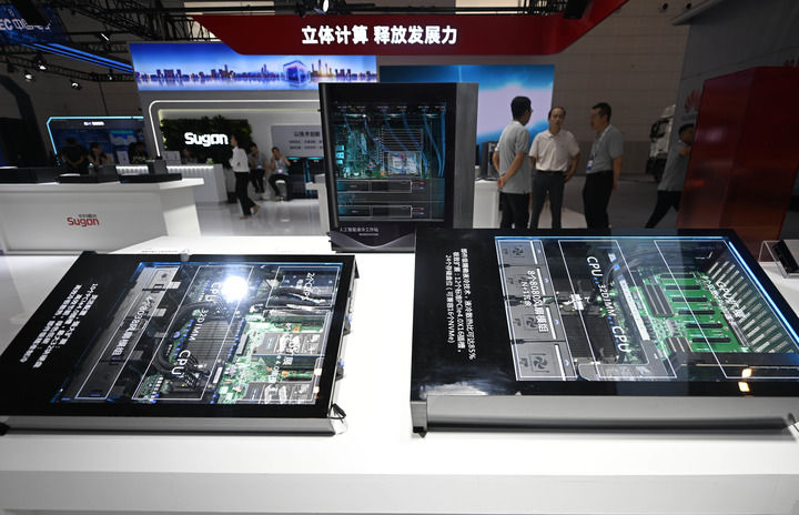 這是6月20日在博覽會(huì)上拍攝的中科曙光展區(qū)的一臺人工智能服務(wù)器。新華社記者 趙子碩 攝