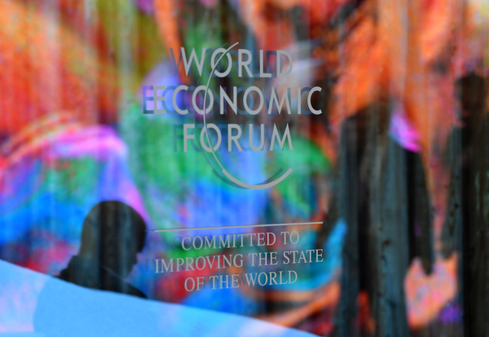 ↑在瑞士達(dá)沃斯拍攝的世界經(jīng)濟(jì)論壇標(biāo)識。