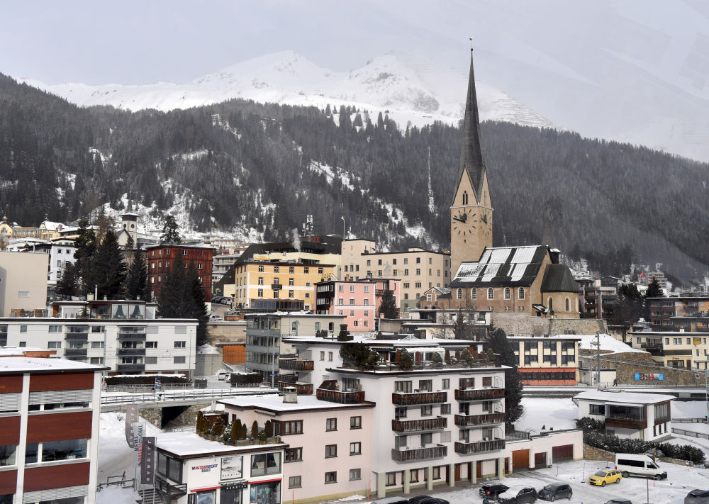 ↑雪中的瑞士小鎮(zhèn)達(dá)沃斯。