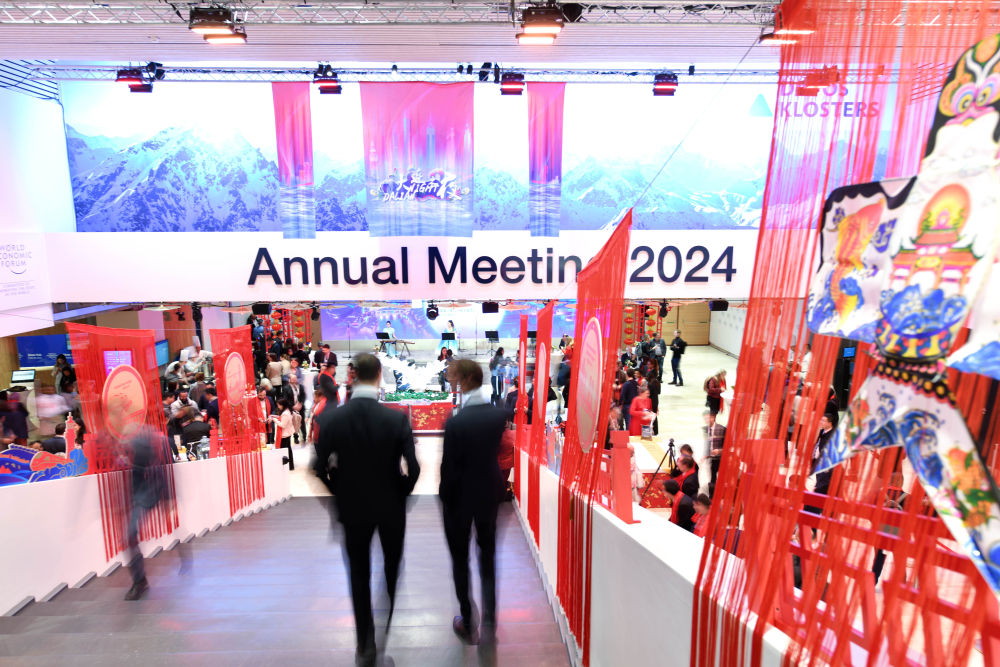 ↑在瑞士達(dá)沃斯舉行的世界經(jīng)濟(jì)論壇2024年年會現(xiàn)場。