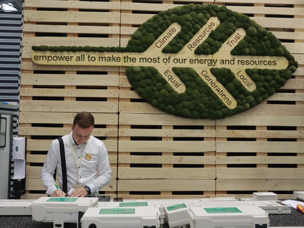 晶澳太陽能科技股份有限公司(簡稱“晶澳科技”)展臺上展示了各種功率和尺寸的太陽能電池板。據介紹,該公司的光伏產品在歐洲已有廣泛的應用場景,從家庭到大型工廠和超市均有覆蓋。