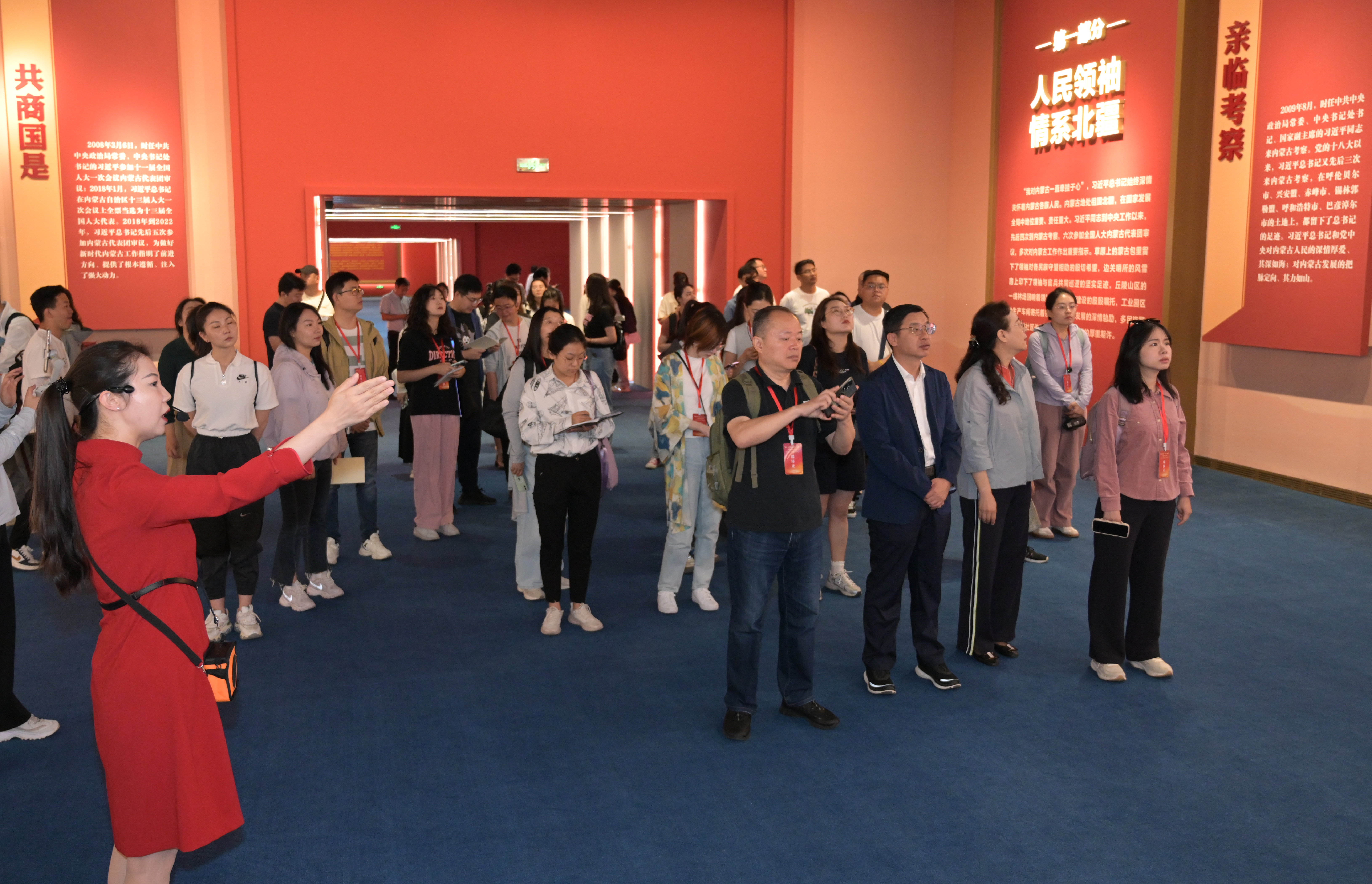 為采訪團成員進行了生動講解后,內(nèi)蒙古展覽館宣傳教育部講解員白吉娜感觸頗深:“我要以鑄牢中華民族共同體意識為主線,用心用情地做好每一次講解,講好更多紅色故事,讓更多的人了解內(nèi)蒙古的歷史和奮進歷程,為內(nèi)蒙古發(fā)展貢獻一份光和熱?!?/p>
