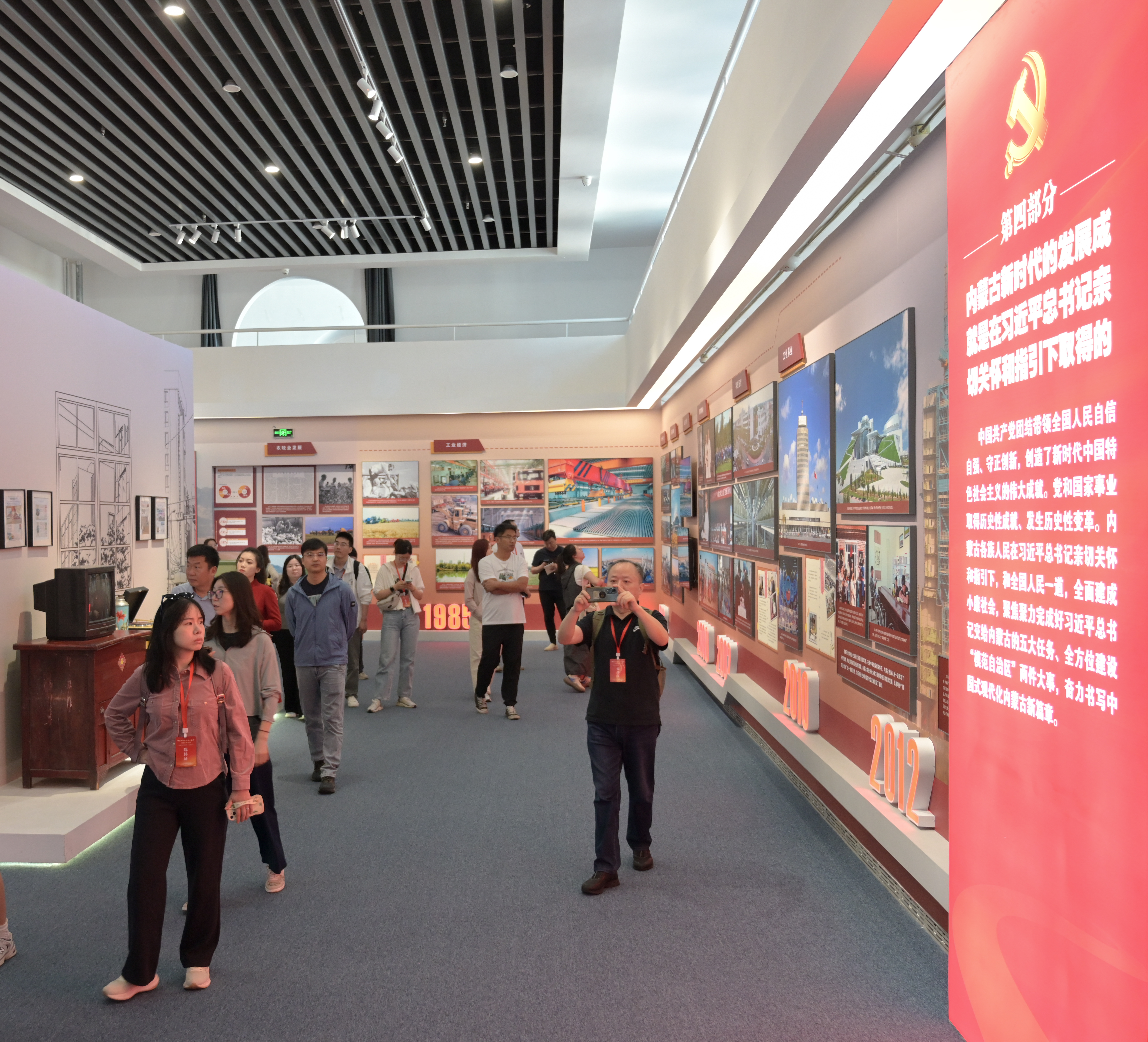 “牢記囑托 感恩奮進”主題展以鑄牢中華民族共同體意識為主線,分為“人民領(lǐng)袖 情系北疆”“高瞻遠矚 把舵領(lǐng)航”“五大任務(wù) 擔當奮進”“聚焦主線 模范前行”“人民至上 初心如磐”“勇闖新路 挺進中游”六大篇章,全面回顧了習近平總書記對內(nèi)蒙古的深情關(guān)懷和厚愛期許,生動展現(xiàn)了各族干部群眾緊跟總書記奮進新征程、建功新時代的生動實踐。