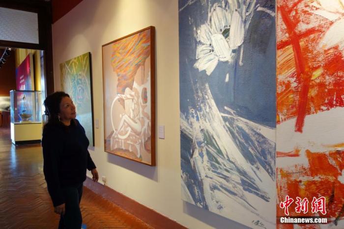 資料圖:當?shù)貢r間2016年11月18日,利馬,一名秘魯女觀眾觀看APEC“人與自然”藝術(shù)展。11月16日,為期23天的“感知中國走進秘魯——APEC‘人與自然’藝術(shù)展”在秘魯國家考古人類學歷史博物館舉辦。 中新社記者 莫成雄 攝