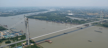 江蘇南京,仙新路過(guò)江通道主橋建設(shè)中,創(chuàng)新應(yīng)用中建五洲研發(fā)的抗疲勞正交異性鋼橋面板,試驗(yàn)結(jié)果顯示橋梁的使用壽命提高72%以上。