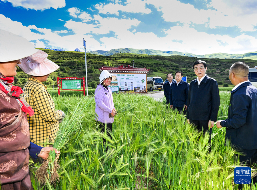 7月1日至3日,中共中央政治局常委、全國(guó)政協(xié)主席王滬寧在四川甘孜、阿壩調(diào)研。這是7月1日王滬寧在甘孜縣了解青稞生產(chǎn)情況。新華社記者 饒愛(ài)民 攝