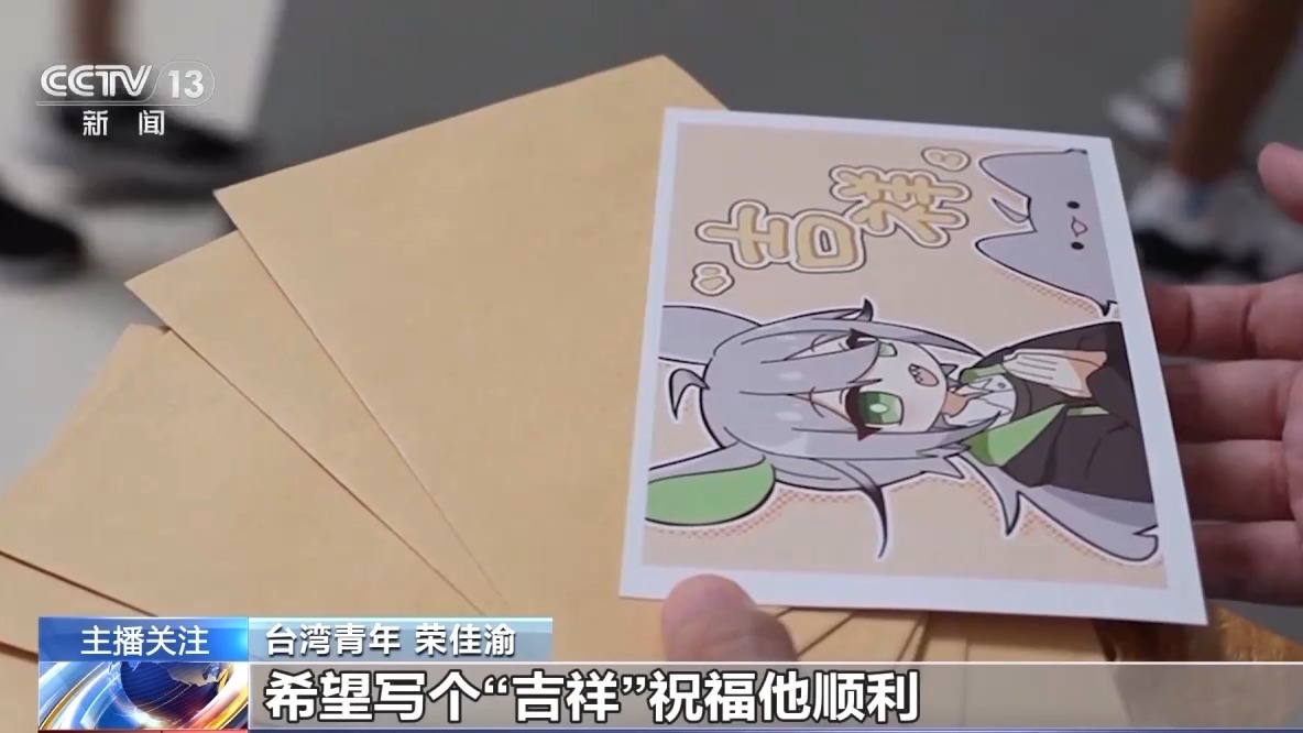 臺(tái)灣青年 榮佳渝:他跟我在介紹一些瓷器之類的,可以源源不斷在那邊講,我就覺得好厲害,當(dāng)然也會(huì)希望繼續(xù)跟他交流,因?yàn)榭ㄆ潜容^有心意的東西,我就想自己手畫交給對(duì)方,寫個(gè)“吉祥”祝福他順利。
