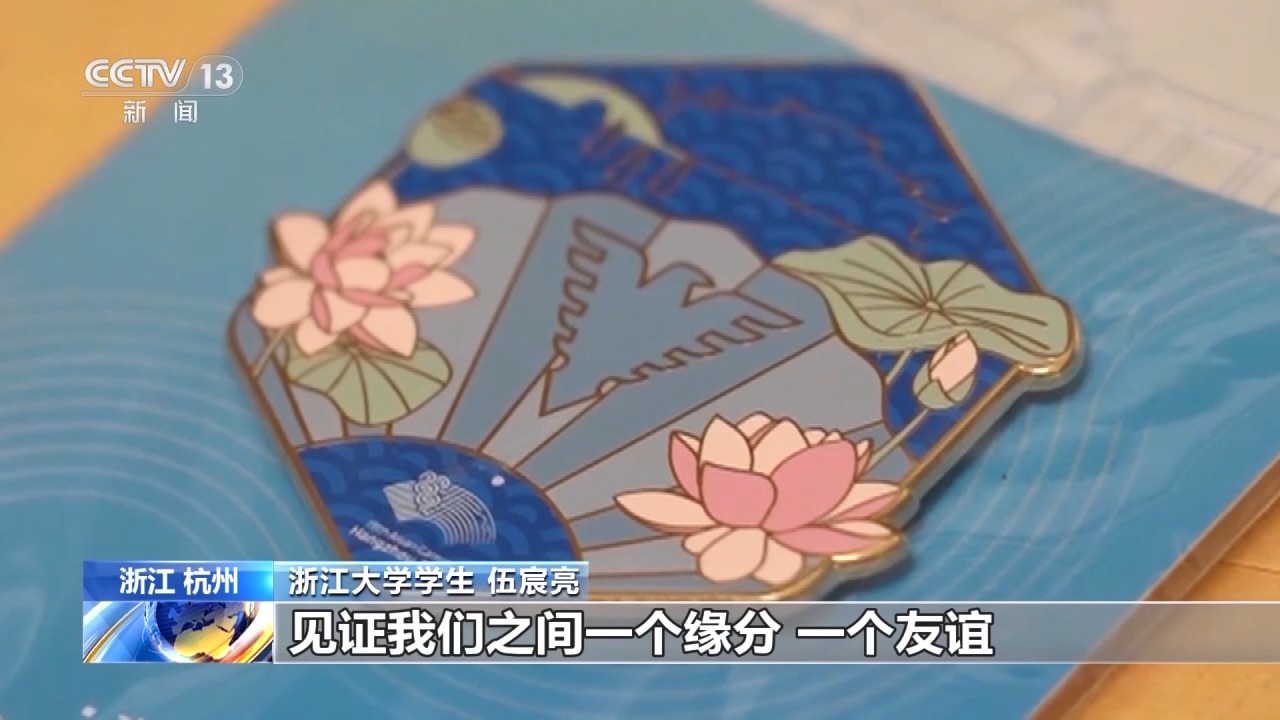 浙江大學(xué)學(xué)生 伍宸亮:這個(gè)徽章是浙江大學(xué)在去年的杭州亞運(yùn)會(huì)、亞殘運(yùn)會(huì)期間為志愿者設(shè)計(jì)的一個(gè)專屬的徽章,在徽章設(shè)計(jì)的過程中,它是全由我們同學(xué)自己設(shè)計(jì)的,也希望以這枚徽章,見證我們之間的緣分和友誼。