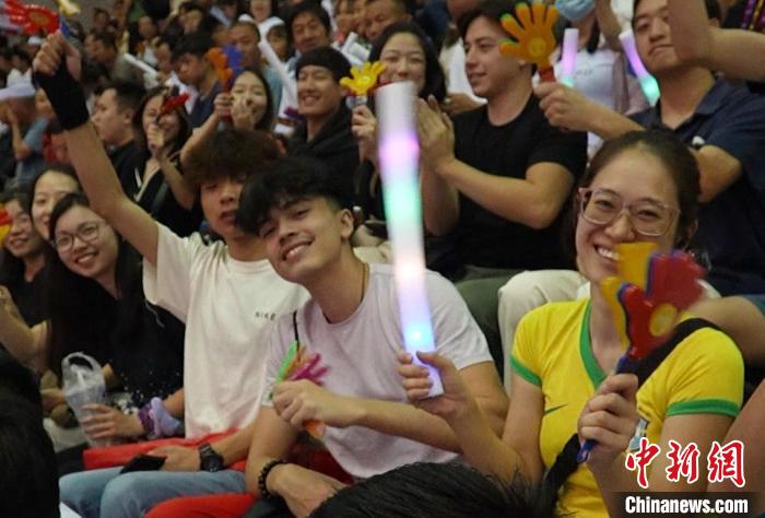 賽場上,球員們?nèi)Ρ寂堋⒓ち覍?,精彩的進(jìn)球引來觀眾陣陣歡呼。海外臺青也沉浸其中,目不轉(zhuǎn)睛地盯著賽場,和身邊的伙伴們討論著喜愛的球員?!拔覍侵夜懦擎?zhèn)隊(duì)印象最深刻,尤其是6號選手,他的投籃非常精準(zhǔn)?!笔状蝸淼酱箨懙暮M馀_青李文陽說。
