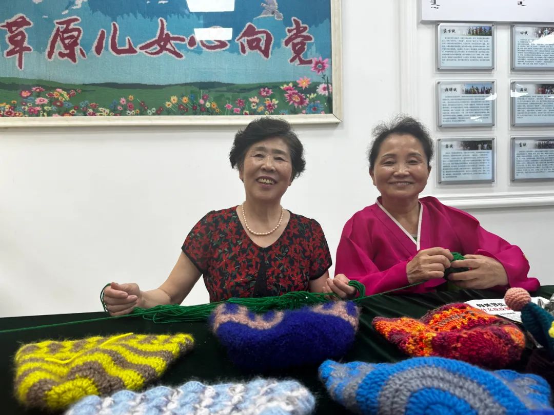 民族工藝傳承區(qū)里,志愿者高娃帶領(lǐng)圍坐桌前的“同學(xué)們”編織各類毛線織品,絲線繡出來(lái)的花鳥(niǎo)圖案引起記者們的注意。朝鮮族居民李貞子和漢族居民劉海燕是“老搭檔”,屬于“零基礎(chǔ)”學(xué)員的她們連續(xù)多年堅(jiān)持每周上課,即便沒(méi)有課程也會(huì)來(lái)活動(dòng)中心相互切磋?,F(xiàn)在,課堂上教過(guò)的各式民族工藝織品,二人都能信手拈來(lái)。