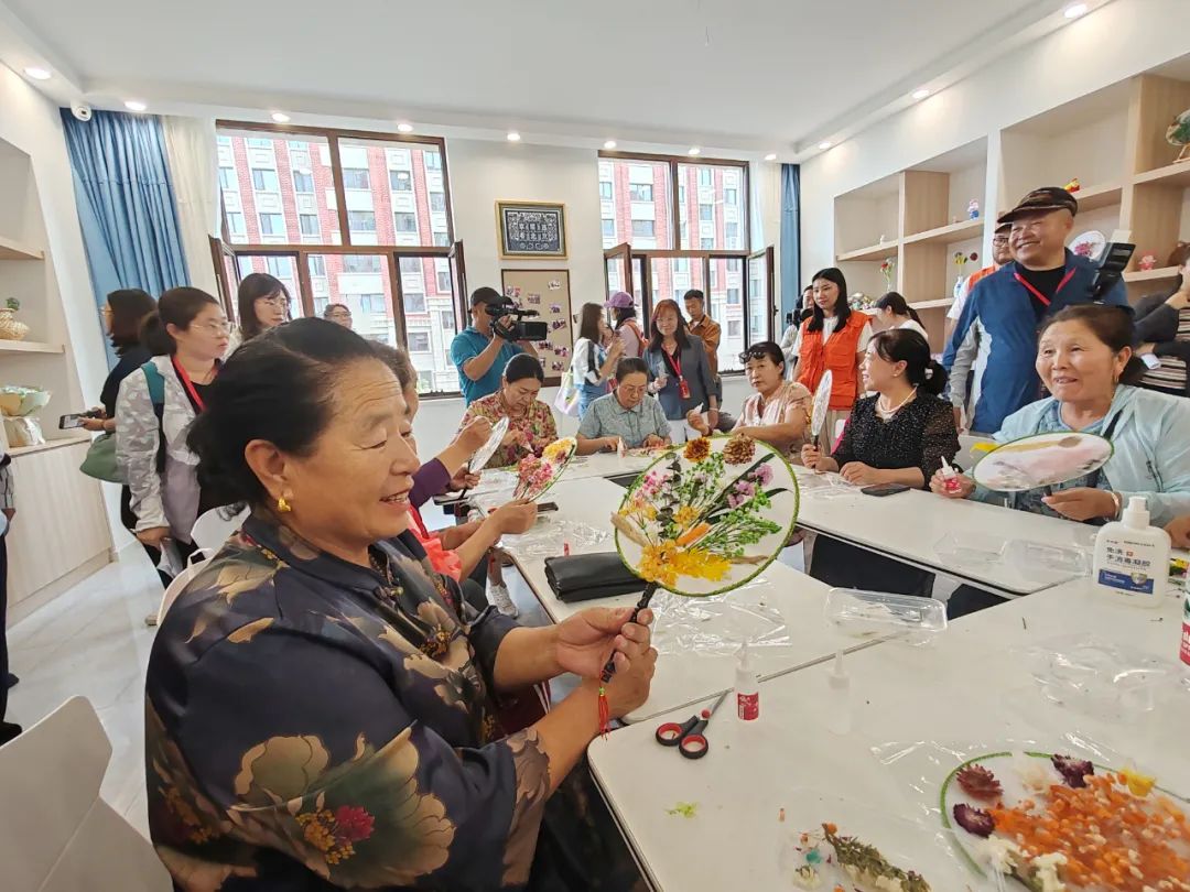 高娃說(shuō):“老姐妹們坐在一起刺繡做工,一邊還能聊天。朝鮮族的姐妹教大家做泡菜,回族姐妹教炸馓子,到了端午節(jié),我們還一起包粽子?!崩钬懽右舱f(shuō):“現(xiàn)在,我們各個(gè)民族的特色菜,我都略懂一二?!?/p>
