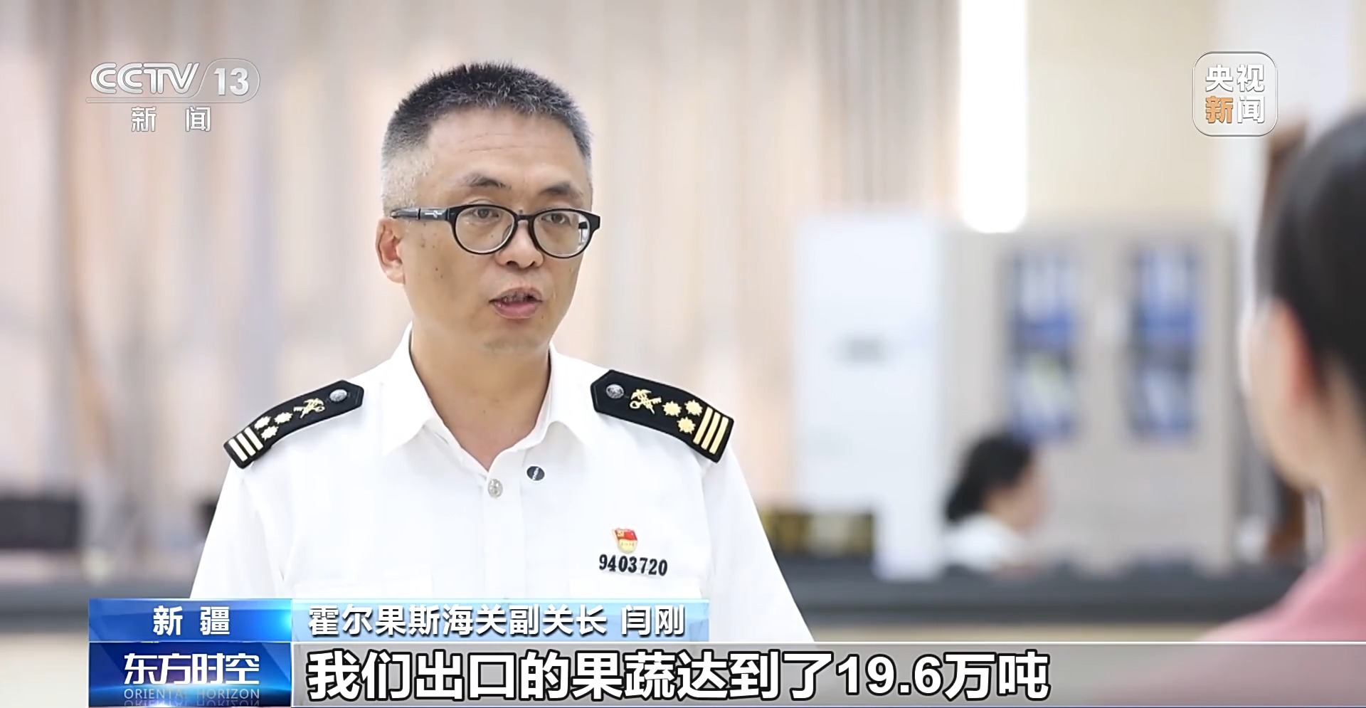 霍爾果斯海關(guān)副關(guān)長(zhǎng) 閆剛:果蔬出口一直是我們口岸的一大特色和亮點(diǎn),2023年全年我們出口的果蔬達(dá)到了19.6萬噸,今年1—6月份,我們出口的果蔬就達(dá)到了20萬噸,就是說我們今年上半年已經(jīng)完成了去年全年的量,這說明“提前申報(bào)+口岸直通”的通關(guān)模式,對(duì)果蔬出口,對(duì)企業(yè)減少成本有巨大的推進(jìn)作用。