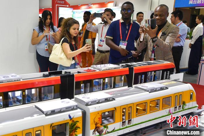 6月18日,第二十二屆中國·海峽創(chuàng)新項目成果交易會(簡稱“海創(chuàng)會”)在福建福州開幕。圖為參觀者在中國中車展館內(nèi)參觀?!≈行律缬浾?張斌 攝