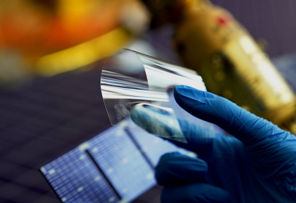 4月12日,河北省秦皇島經(jīng)濟技術(shù)開發(fā)區(qū)一家特種玻璃企業(yè)的工人在展示一款用于航天領(lǐng)域的玻璃產(chǎn)品。新華社記者 楊世堯 攝