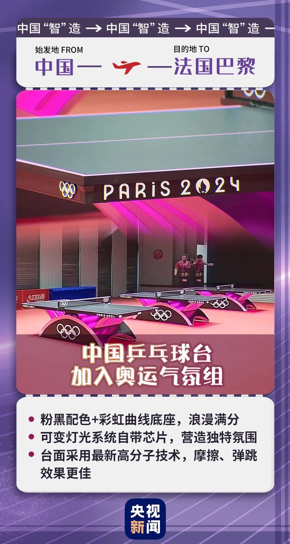 除了“中國紅”,還有很多中國“智”造也將在巴黎奧運會各大賽場上精彩亮相。會發(fā)光的彩色乒乓球臺、可循環(huán)“中國地板”、中國智能芯、一體壓制“中國杠鈴”、“子彈時間”中國AI、“中國屏”……