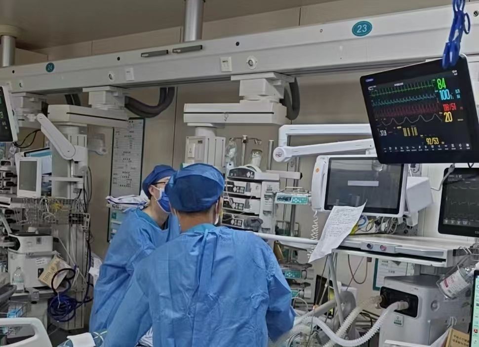 近日,湘雅二醫(yī)院重癥醫(yī)學(xué)科醫(yī)生搶救熱射病患者。新華社發(fā)