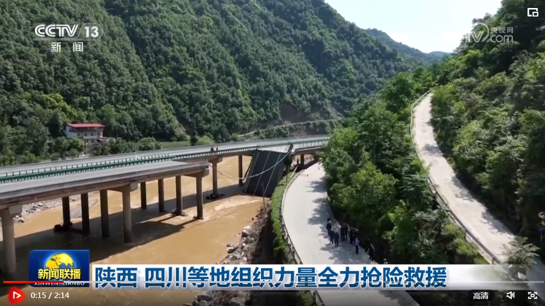 今天(7月21日),在陜西商洛市柞水縣高速公路橋梁垮塌現(xiàn)場,救援人員通過舟艇及各類專業(yè)水下搜救設(shè)備、水下蛙人開展拉網(wǎng)式排查,目前,已投入消防、武警等救援力量2200多人,社會救援隊伍近500人,當(dāng)?shù)馗刹咳罕?500多人。今天,交通運(yùn)輸部工作組攜專家,繼續(xù)在現(xiàn)場檢測橋梁技術(shù)狀況等,15名搜救專家及潛水員抵達(dá)現(xiàn)場搜救。