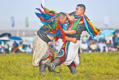 “搏克”即蒙古式摔跤,根據(jù)參賽選手?jǐn)?shù)量分為1024名搏克、512名搏克等比賽,2006年被列入第一批國家級非物質(zhì)文化遺產(chǎn)名錄。本屆搏克比賽歷時3天,賽場上,選手們身穿象征公平的開胸摔跤衣,通過摔、抱、拉、拽等技法,力圖將對手摔倒在地。