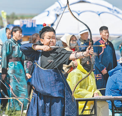 搏克場上,勇士們身姿矯健,近身搏斗;射箭場上,選手們屏息凝神,箭羽破空而出;沙嘎比賽的蒙古包內(nèi),孩童們競相投擲,充滿樂趣……遠(yuǎn)處,悠揚(yáng)的馬頭琴聲伴著奶茶醇香,游客們歡聲笑語,沉浸在這場體育盛宴中。