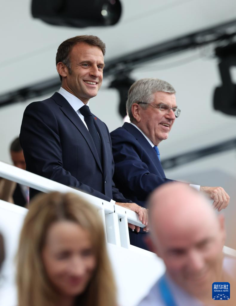 7月26日,法國總統(tǒng)馬克龍出席開幕式。新華社記者 高靜 攝