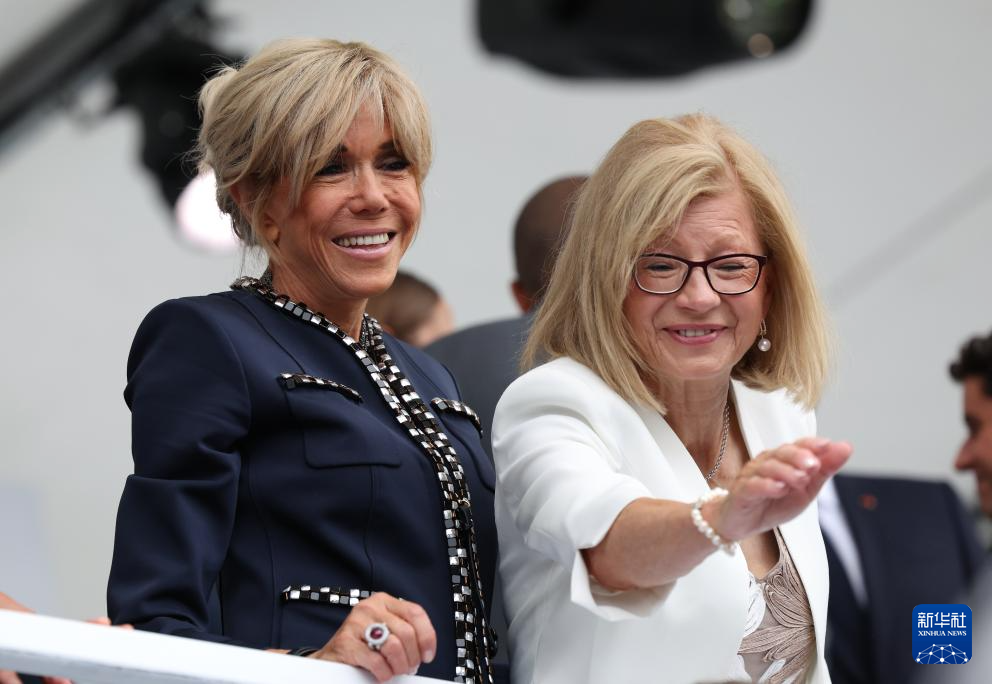 7月26日,法國總統(tǒng)馬克龍夫人布麗吉特(左)在開幕式現(xiàn)場。新華社記者 高靜 攝pagebreak