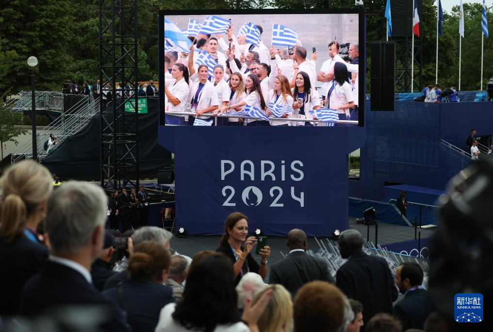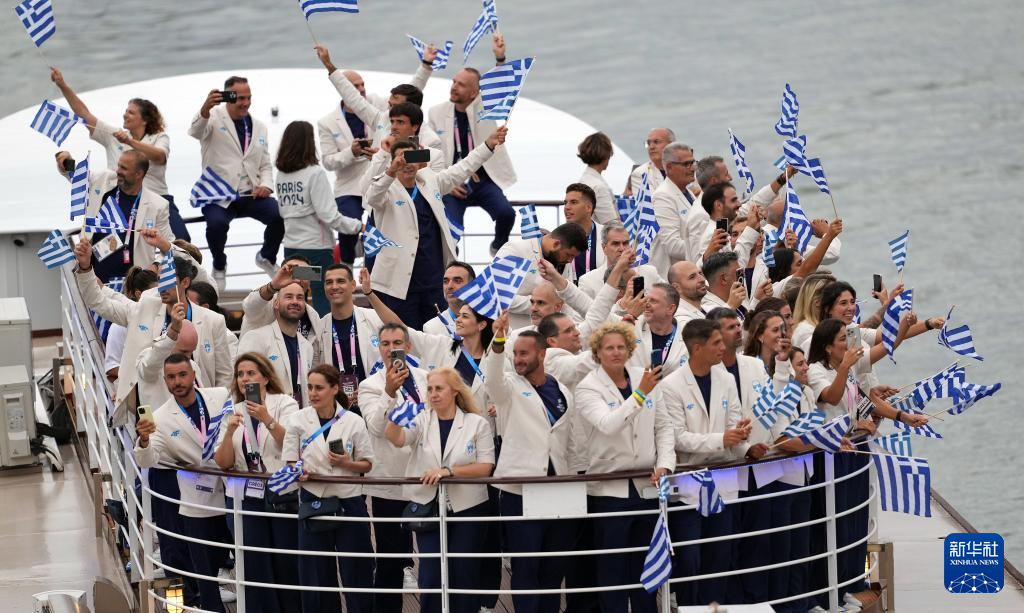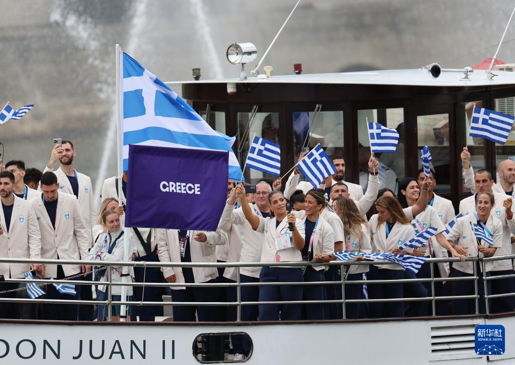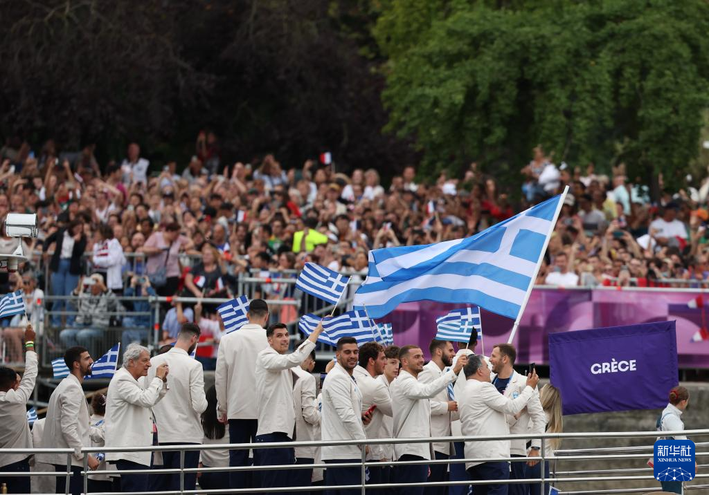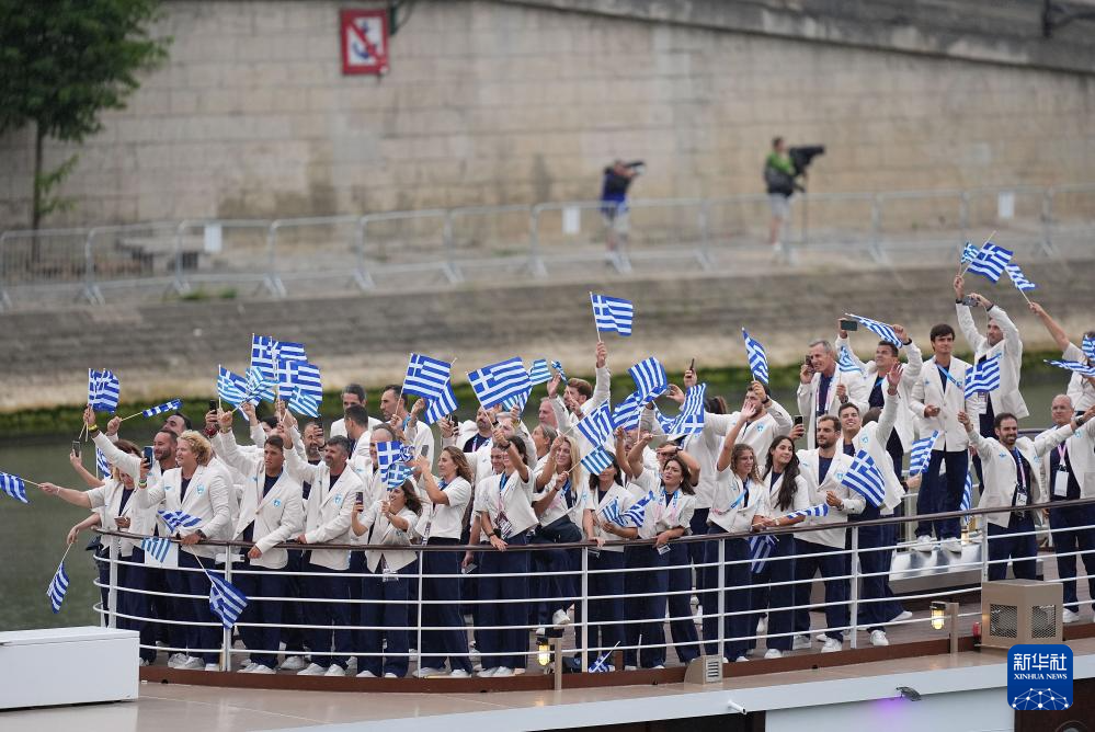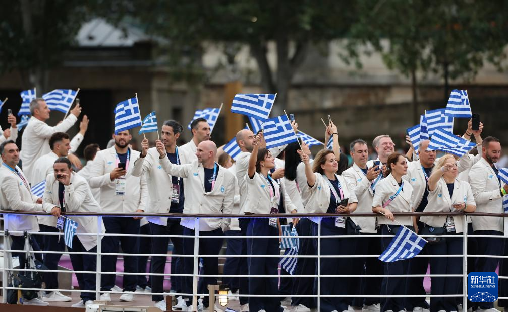 7月26日,希臘體育代表團(tuán)在開幕式上。新華社記者 萬象 攝