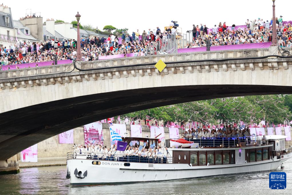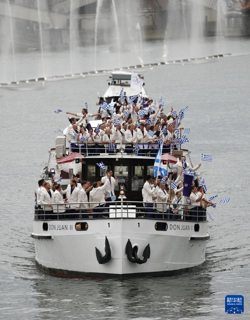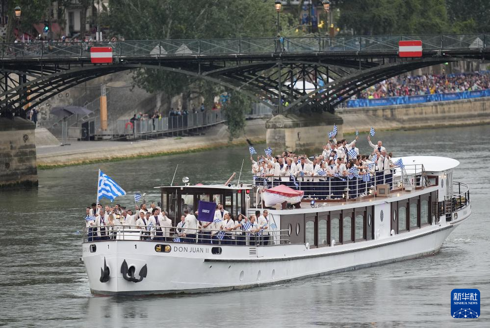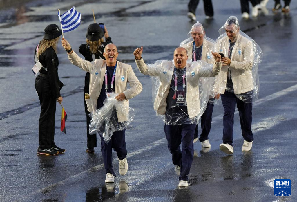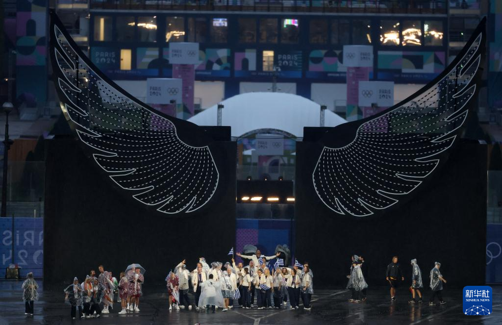 7月26日,希臘體育代表團(tuán)在開幕式上。新華社記者 萬象 攝