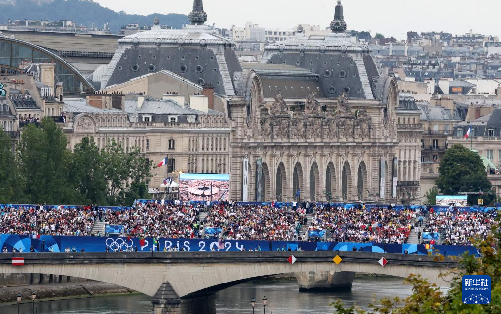 7月26日,觀眾在塞納河邊觀看開幕式。新華社記者 任正來 攝