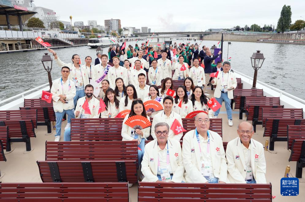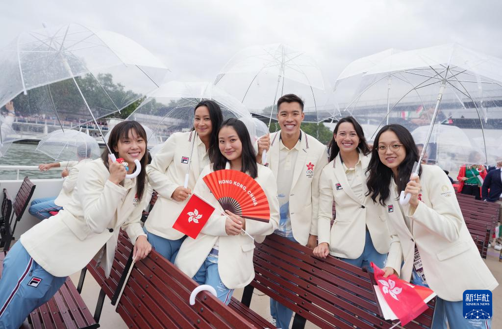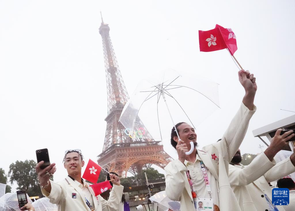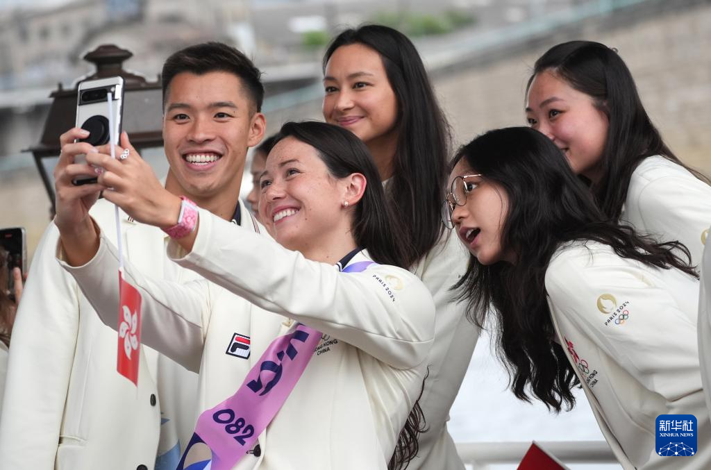 7月26日,中國香港體育代表團(tuán)成員在開幕式上自拍。新華社記者 呂小煒 攝pagebreak