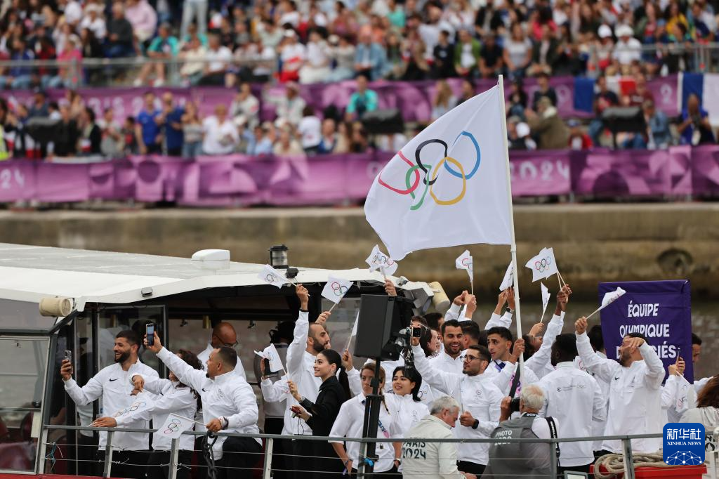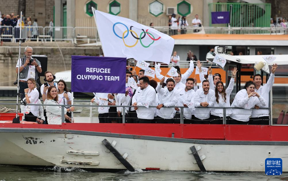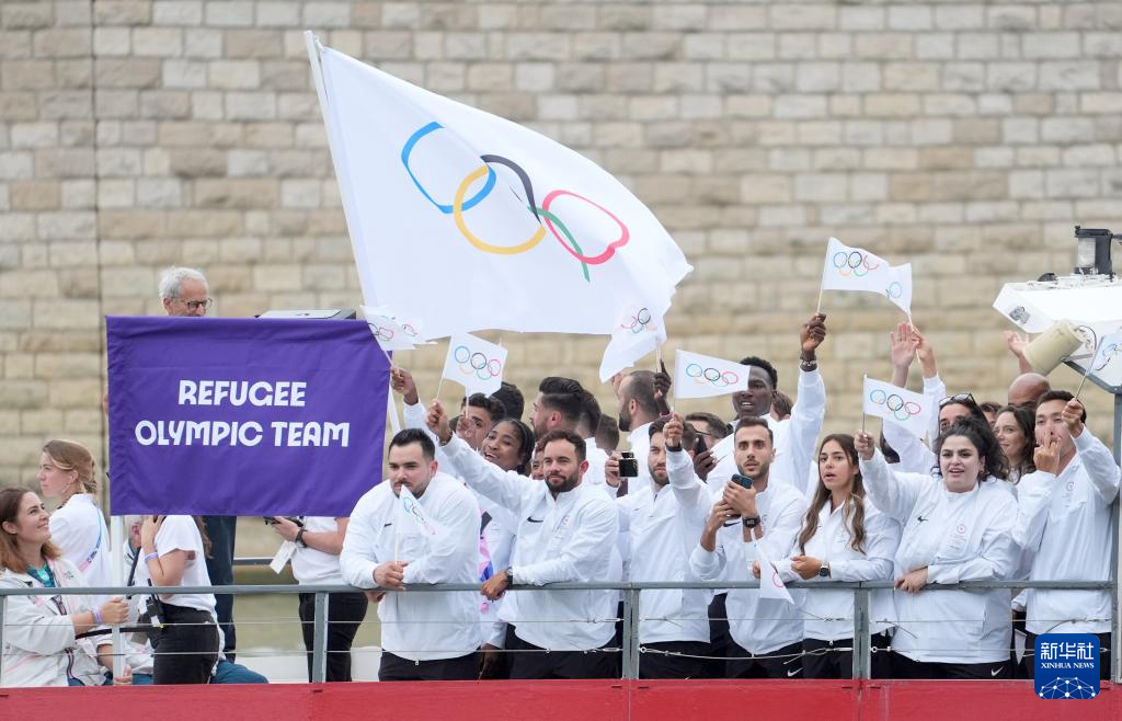 7月26日,難民體育代表團(tuán)在開幕式上。新華社記者 費(fèi)茂華 攝pagebreak