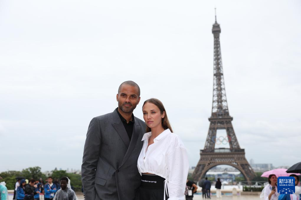 7月26日,法國籃球名宿托尼·帕克(左)在開幕式開始前合影。新華社記者 李穎 攝pagebreak