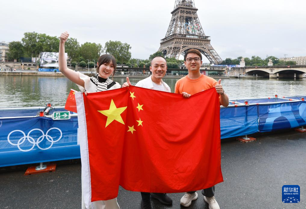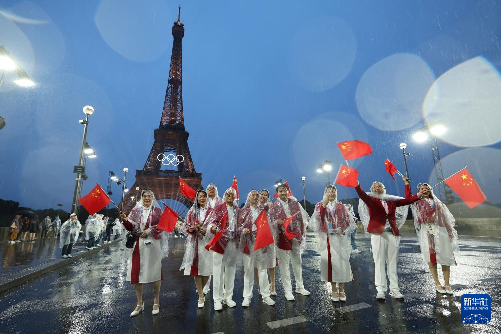 7月26日,中國體育代表團(tuán)成員在埃菲爾鐵塔前。新華社記者 李明 攝pagebreak
