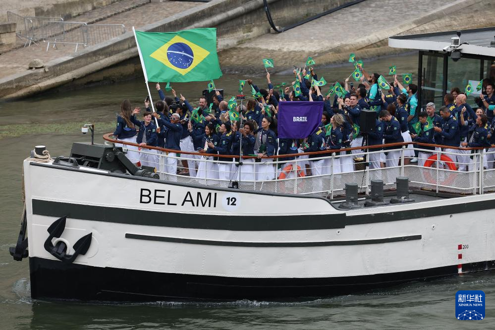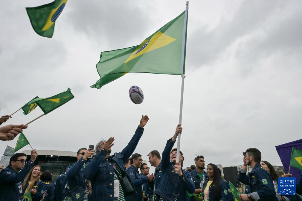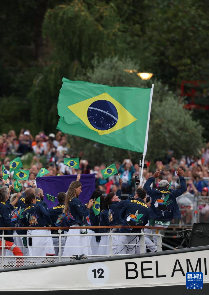 7月26日,巴西體育代表團(tuán)成員在開幕式上。新華社記者 陳斌 攝