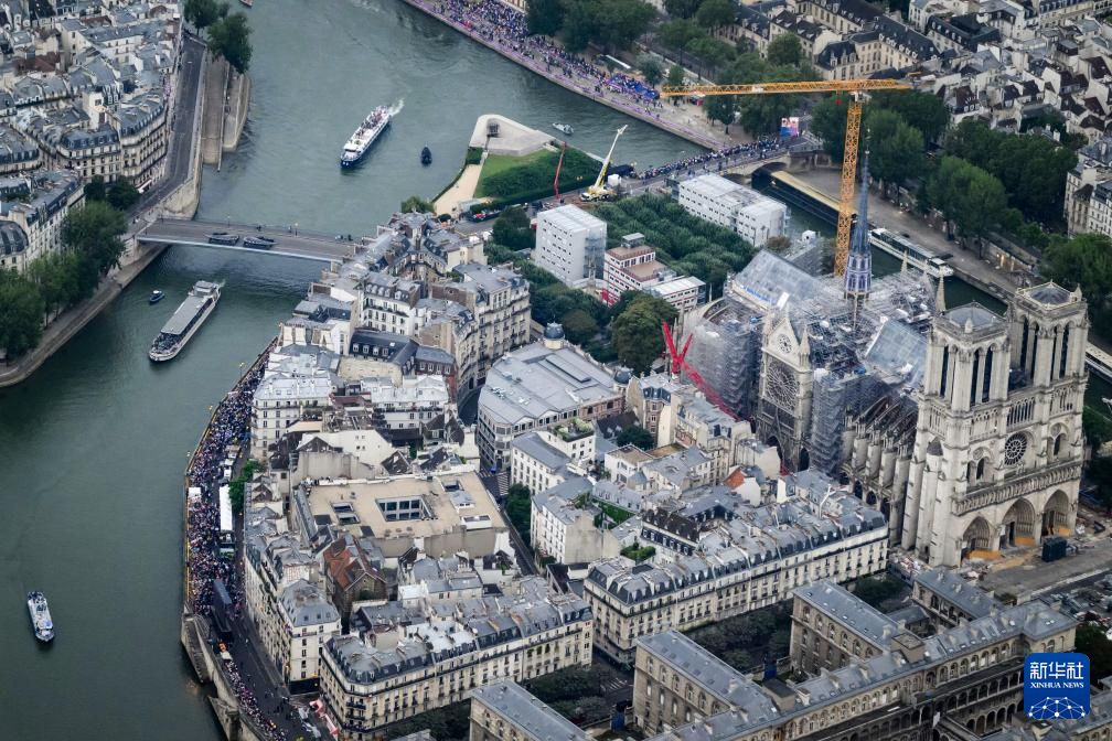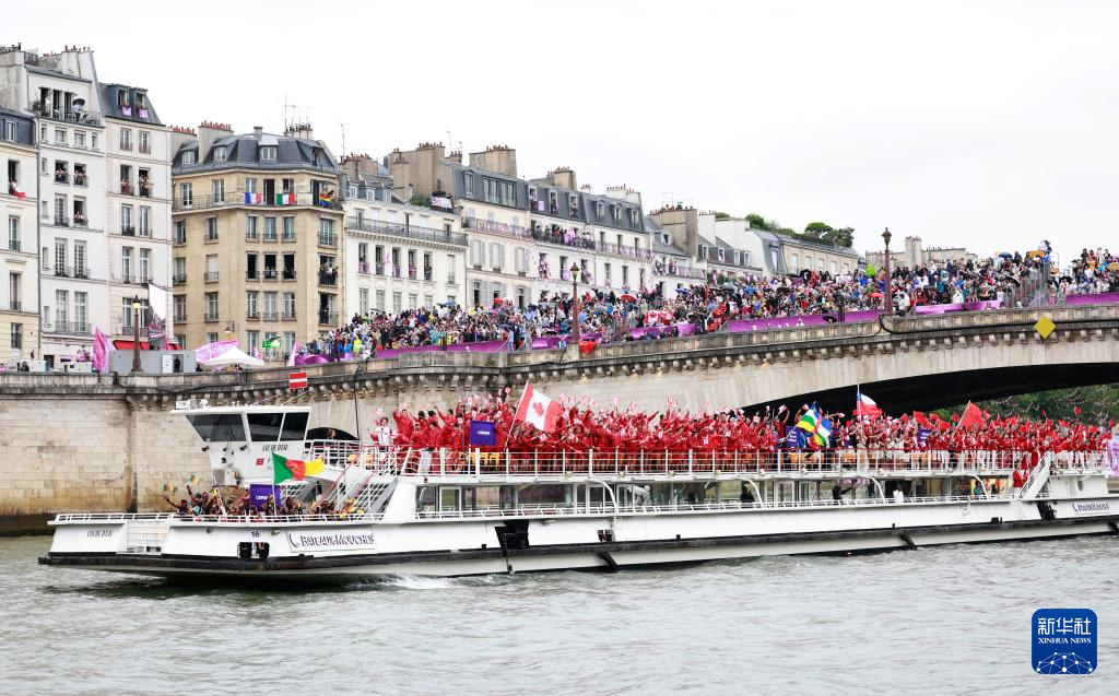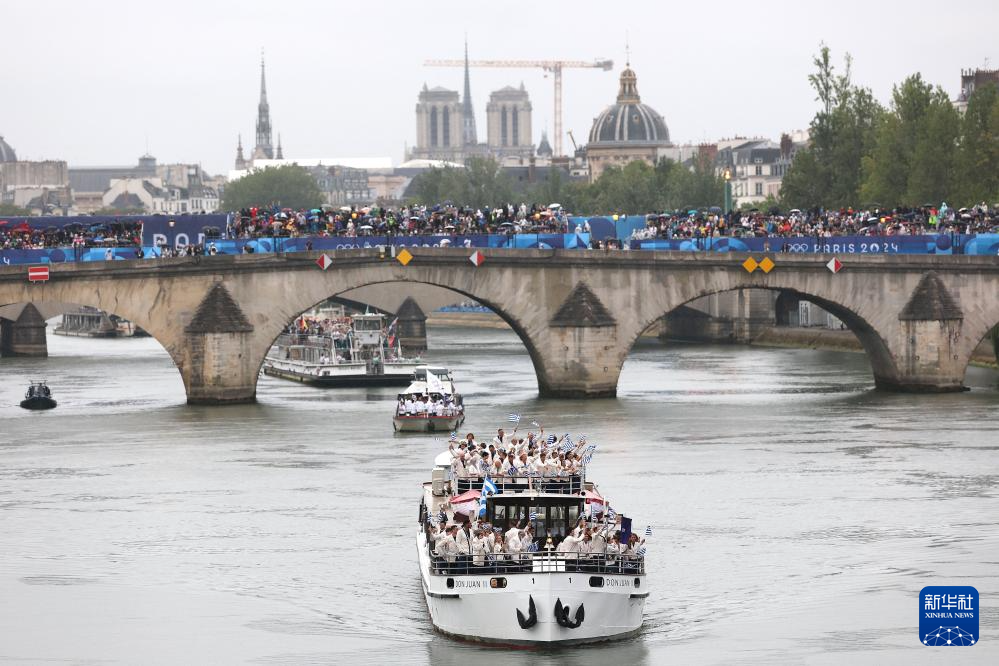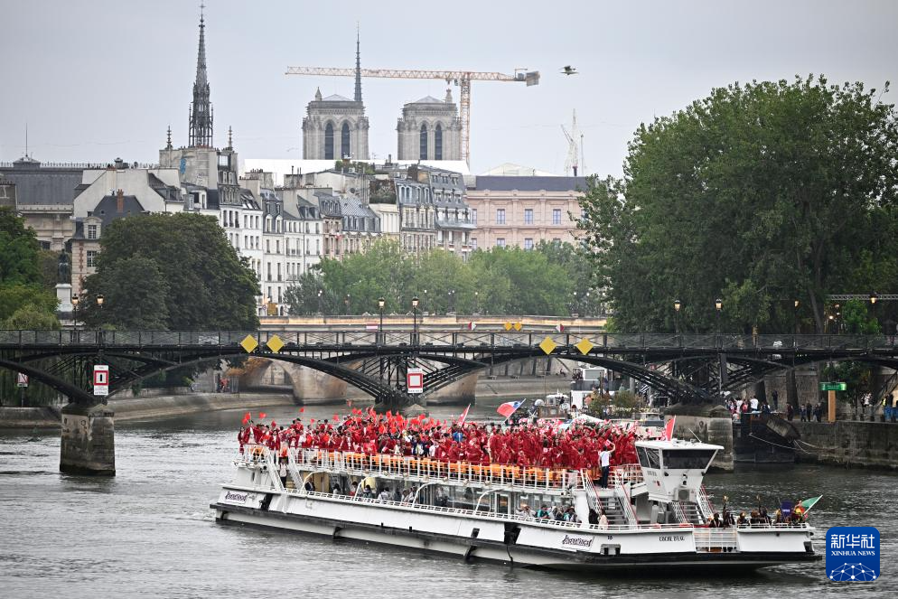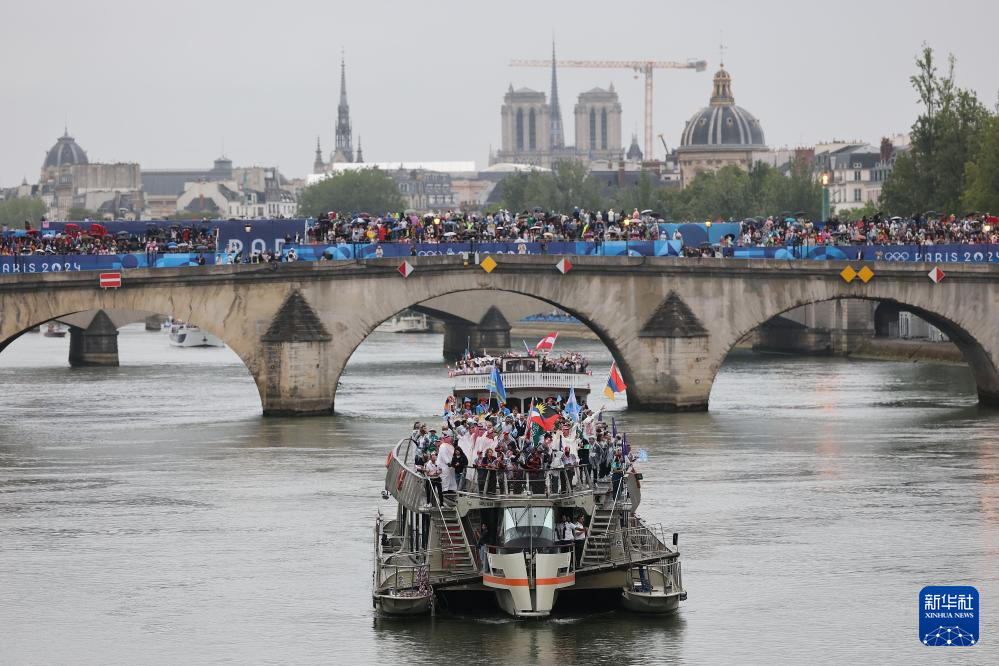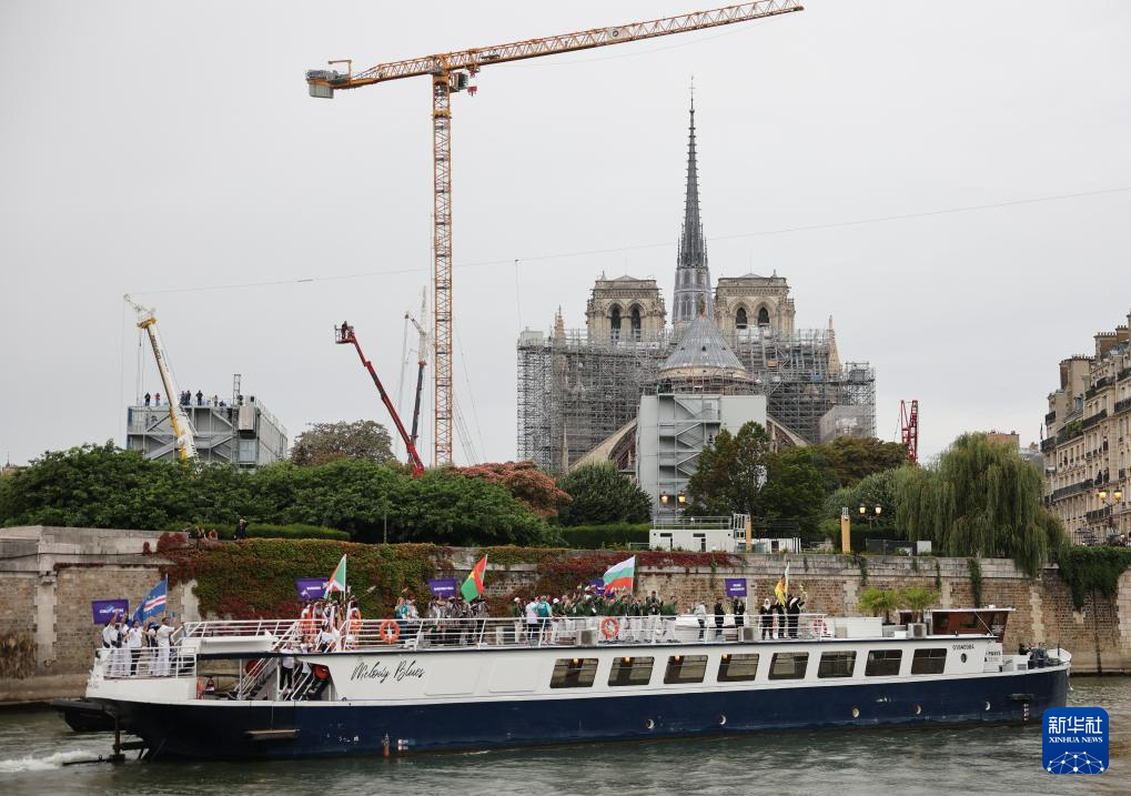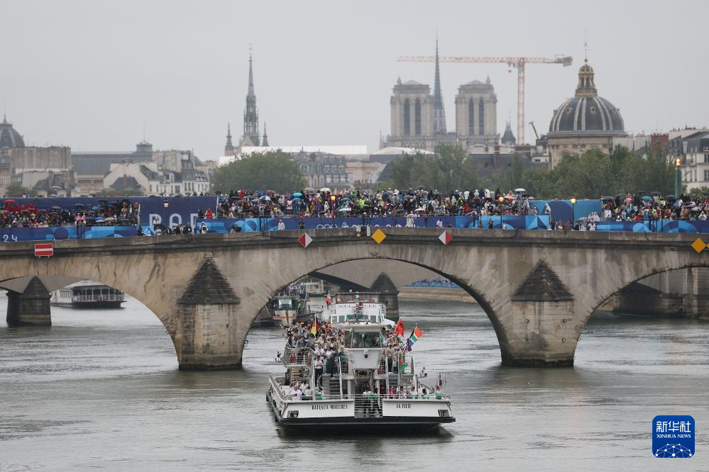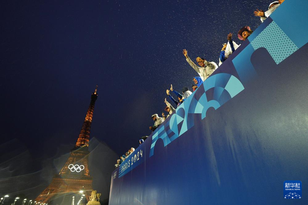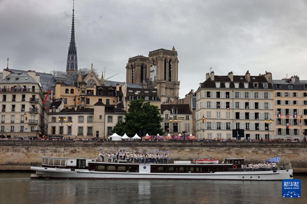 7月26日,各體育代表團(tuán)在開幕式上,右側(cè)是巴黎圣母院。新華社發(fā)(POOL照片/丹·馬蘭)pagebreak