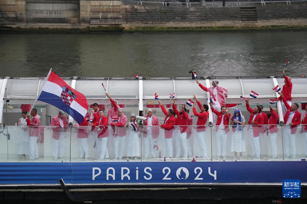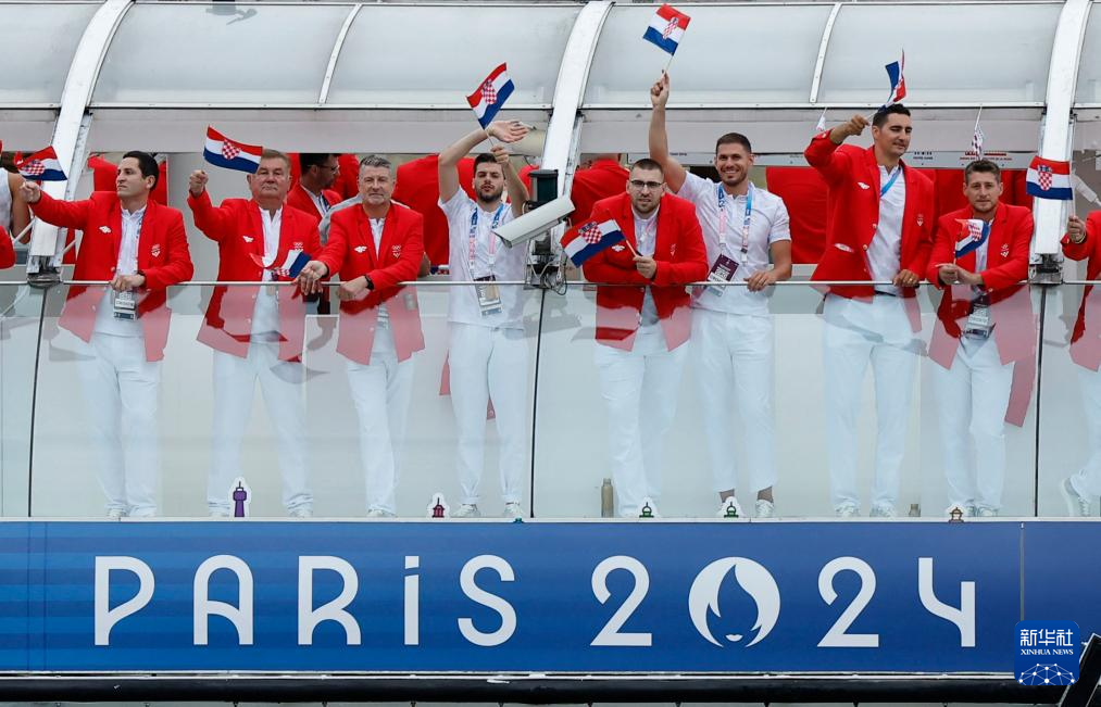 7月26日,克羅地亞體育代表團(tuán)成員在開幕式上。新華社發(fā)(POOL照片/克洛達(dá)赫·基爾科因)pagebreak