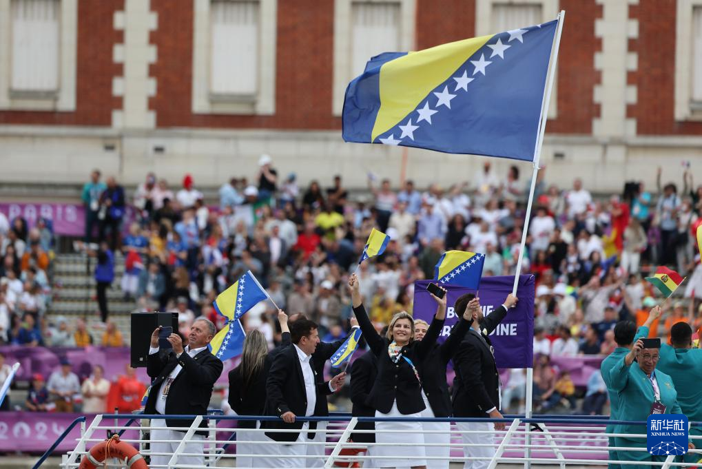 7月26日,波斯尼亞和黑塞哥維那體育代表團(tuán)在開幕式上。新華社記者 王東震 攝