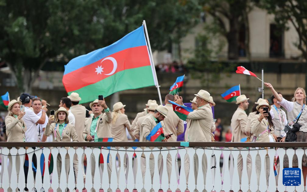 7月26日,阿塞拜疆體育代表團(tuán)成員在開幕式上。新華社記者 王東震 攝